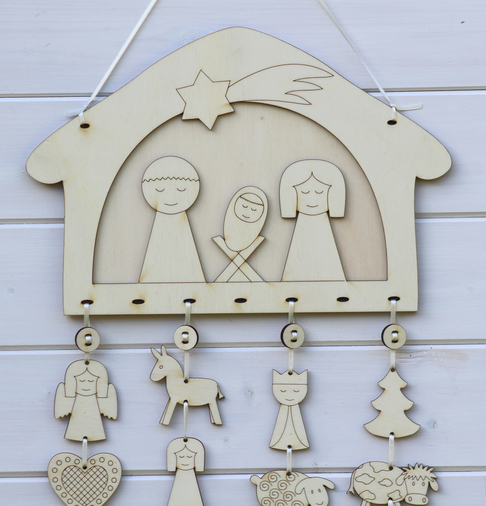 ADVENTNÍ kalendář s betlémem je určen k dalšímu výtvarnému zpracování, lze jej barvit, malovat, polepit, atd. a následně, postupně během adventu, tak vytvořit vlastní dekoraci do vašeho domova. Malé děti mohou malovat fixami, zručnějším výtvarníkům doporučuji slabý kulatý štětec a akrylové barvy. Adventní kalendář lze samozřejmě ponechat v původním přírodním provedení.